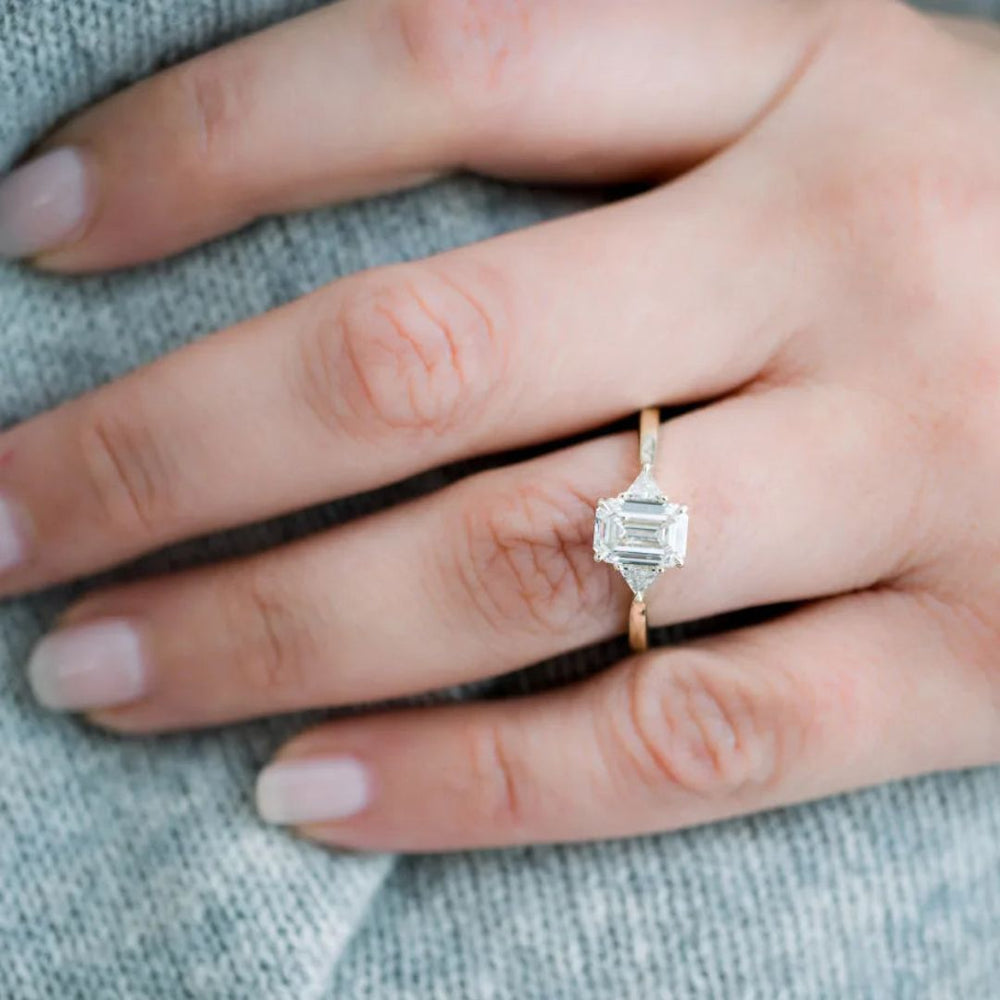 Moissanite 3.68 CT Emerald Cut Diamond Art Nouveau Anniversary Ring