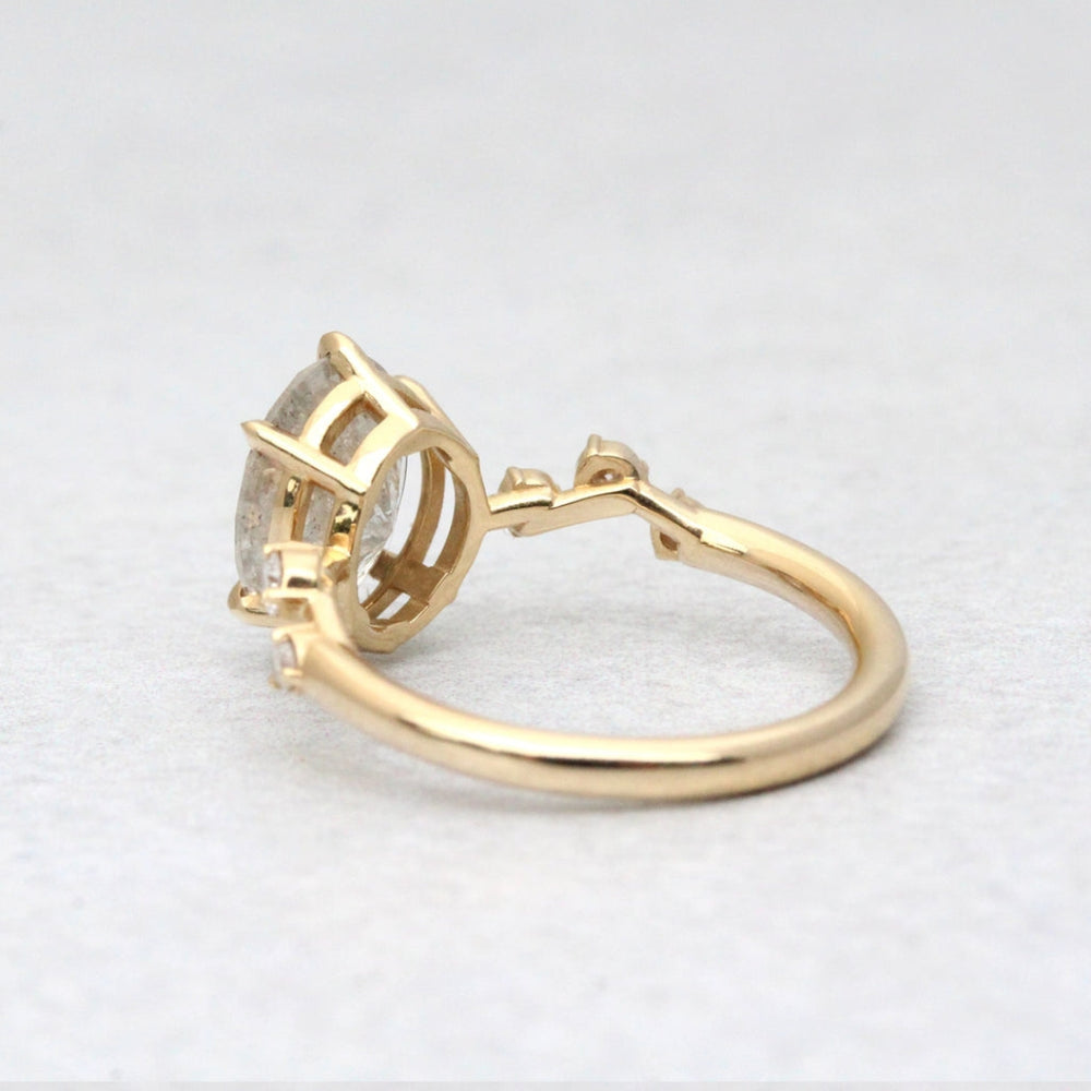 Natural Salt And Pepper 2.28 CT Oval Diamond Unique Anniversary Ring