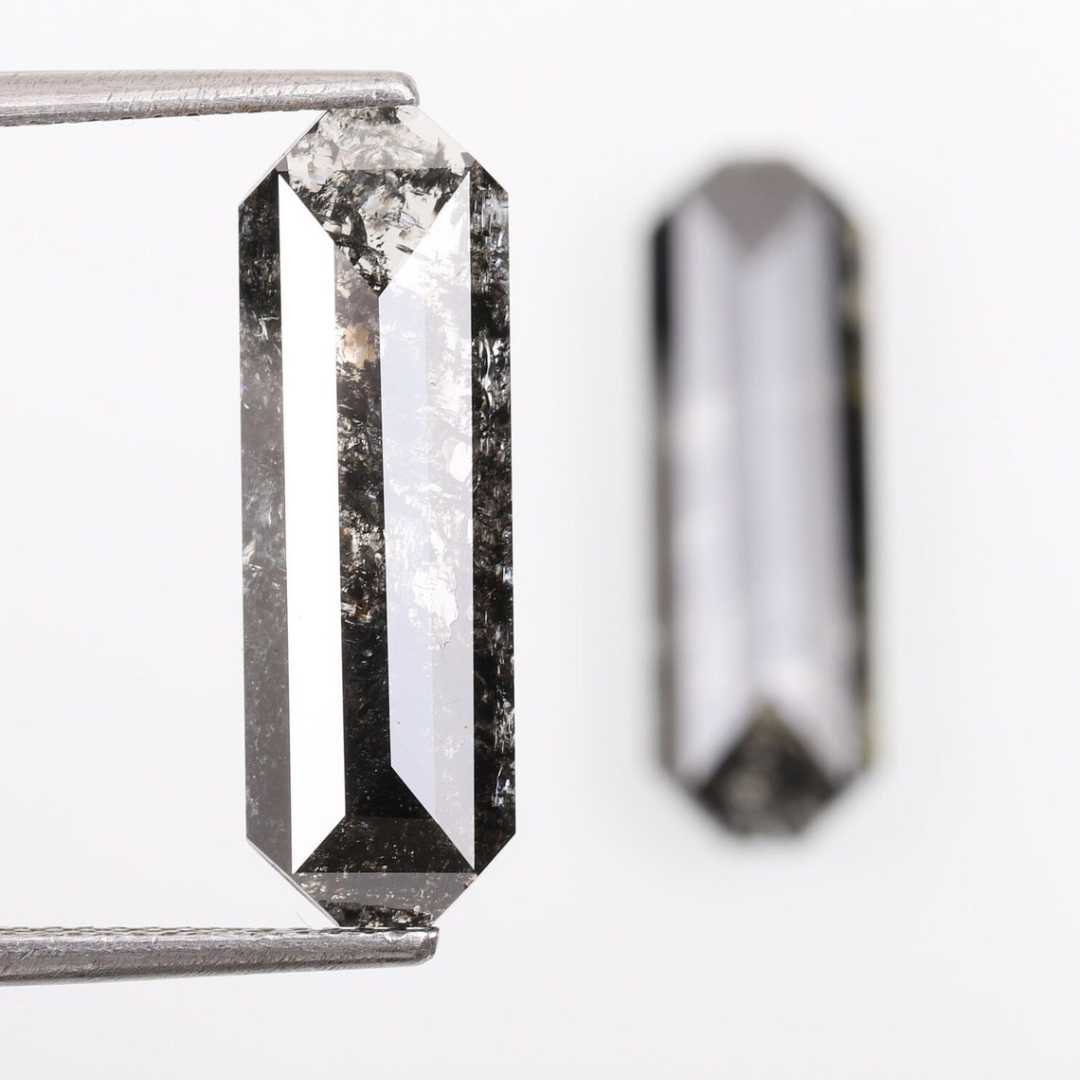 Experience the bold beauty of nature with our Natural Salt and Pepper Emerald Cut Diamond a gemstone that defies traditional expectations. Characterized by its stunning inclusions and elegant emerald cut, this diamond celebrates individuality and authenticity. Each stone is one-of-a-kind, with a captivating mix of smoky greys, blacks, and icy tones, making it the perfect choice for those who seek something truly distinctive.