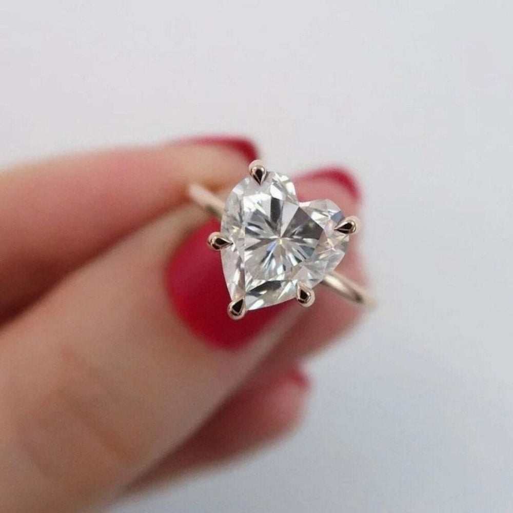 Thomas, A Renowned Actor, And Lucy, A Successful Musician, Were The Power Couple Of The Entertainment Industry. Despite Their Glamorous Public Image, They Struggled To Maintain Authenticity In Their Relationship. One Evening, Thomas Presented Lucy With A Moissanite 2.90 Ct Heart Cut Diamond Art Deco Anniversary Ring, Symbolizing His Unwavering Love And Commitment.