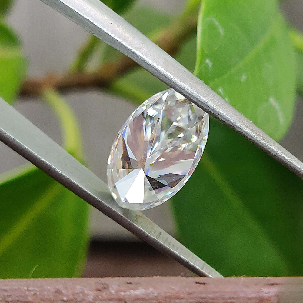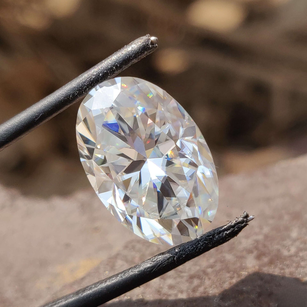 A Moissanite Oval-cut Diamond Combines Timeless Elegance With Brilliant Sparkle. Moissanite, A Stunning Gemstone Known For Its Fire And Brilliance, Is Cut Into An Oval Shape To Create A Sleek, Elongated Silhouette That Enhances Its Natural Luminosity. The Oval Cut Is A Versatile Choice, Offering A Flattering, Sophisticated Appearance That Suits Various Jewelry Styles, From Engagement Rings To Necklaces.