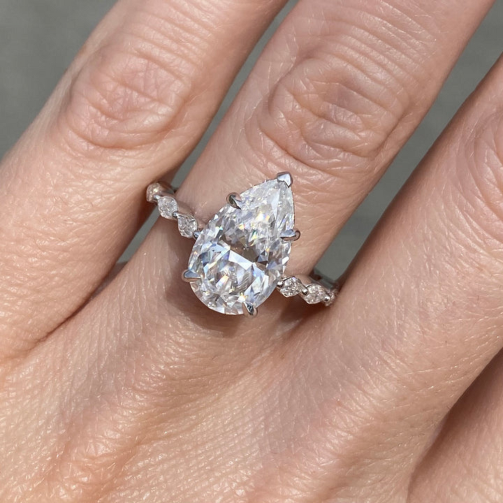 Moissanite 5.70 CT Pear Cut Diamond Edwardian Engagement Ring