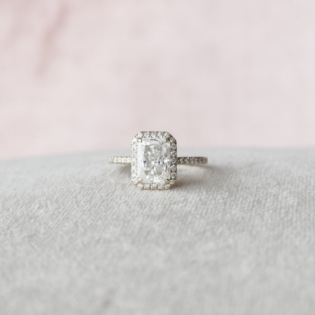 The Moissanite Halo Ring Is A Stunning And Sophisticated Choice For The Modern Bride. This Elegant Design Features A Moissanite Gemstone At Its Centre, Surrounded By A Delicate Halo Of Diamonds Or Gemstones. The Result Is A Breathtakingly Beautiful Ring That Exudes Elegance And Sophistication.