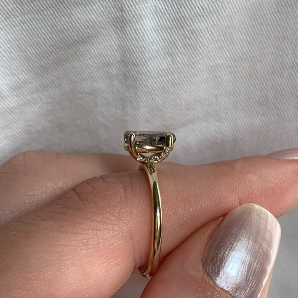 Natural Salt And Pepper 1.60 CT Pear Diamond Unique Anniversary Ring