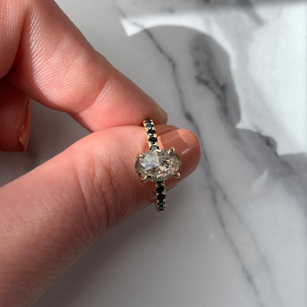 Natural Salt And Pepper 2.75 CT Oval Diamond Anniversary Ring