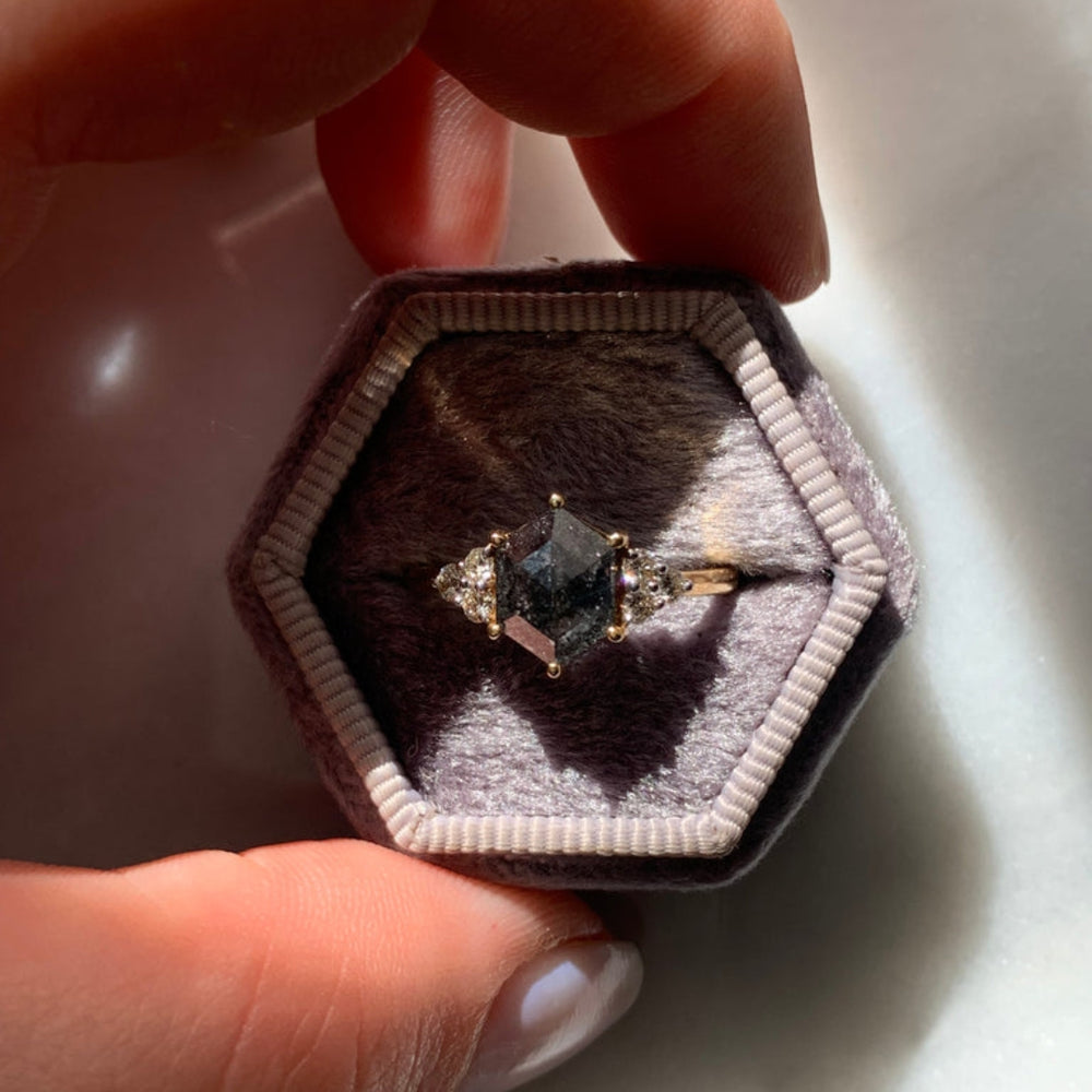 Natural Salt And Pepper 2.00 CT Hexagon Diamond Unique Engagement Ring