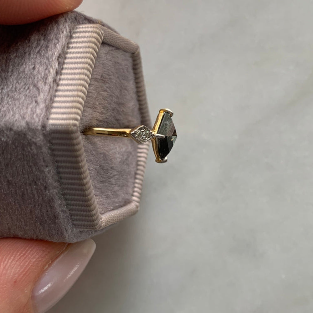 Natural Salt And Pepper 2.20 CT Kite Diamond Unique Wedding Ring