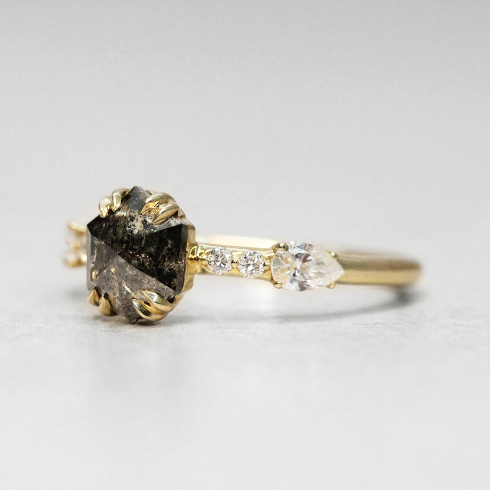 Natural Salt And Pepper 2.55 CT Hexagon Diamond Unique Wedding Ring