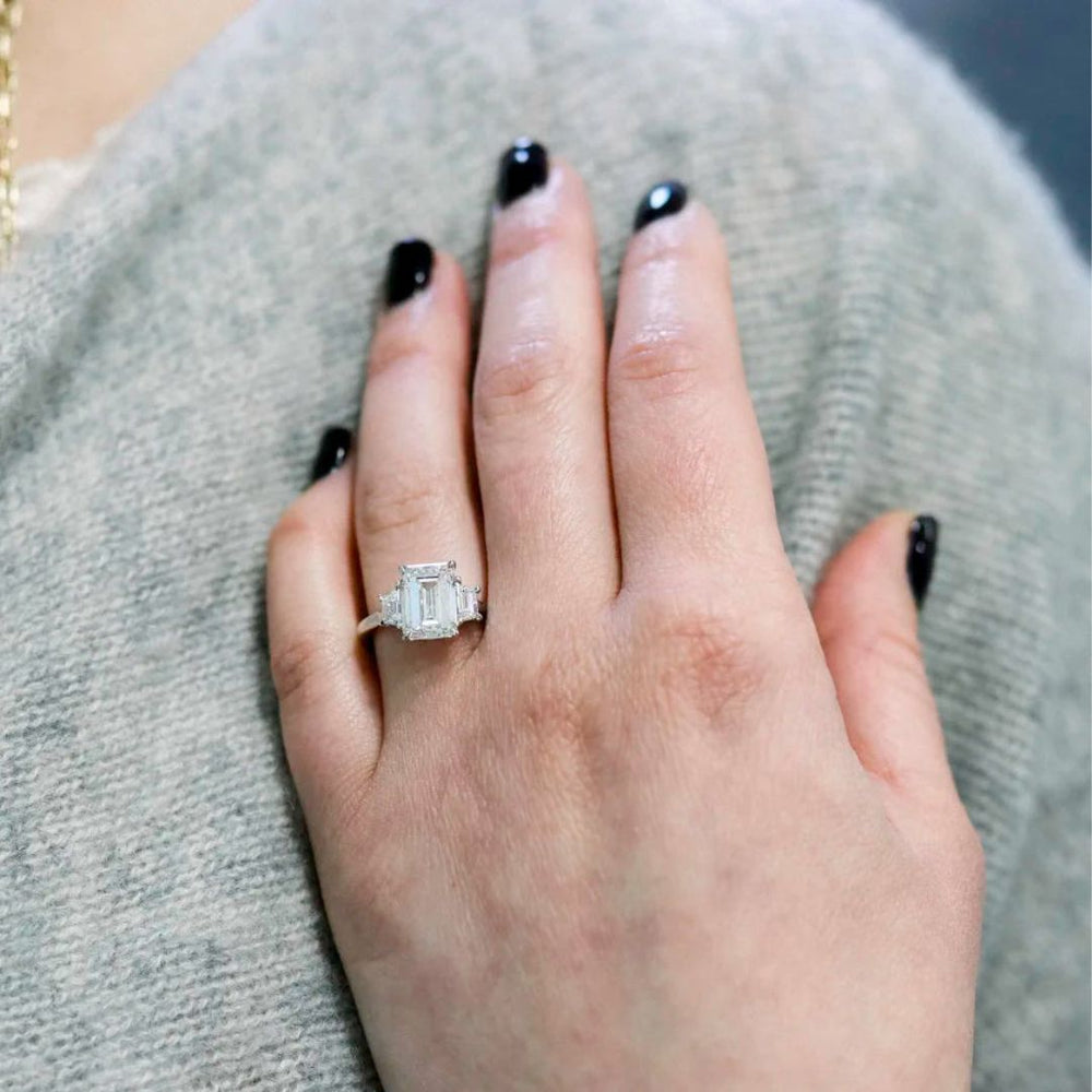Moissanite 4.59 CT Emerald Cut Diamond Mid-Century Handmade Ring